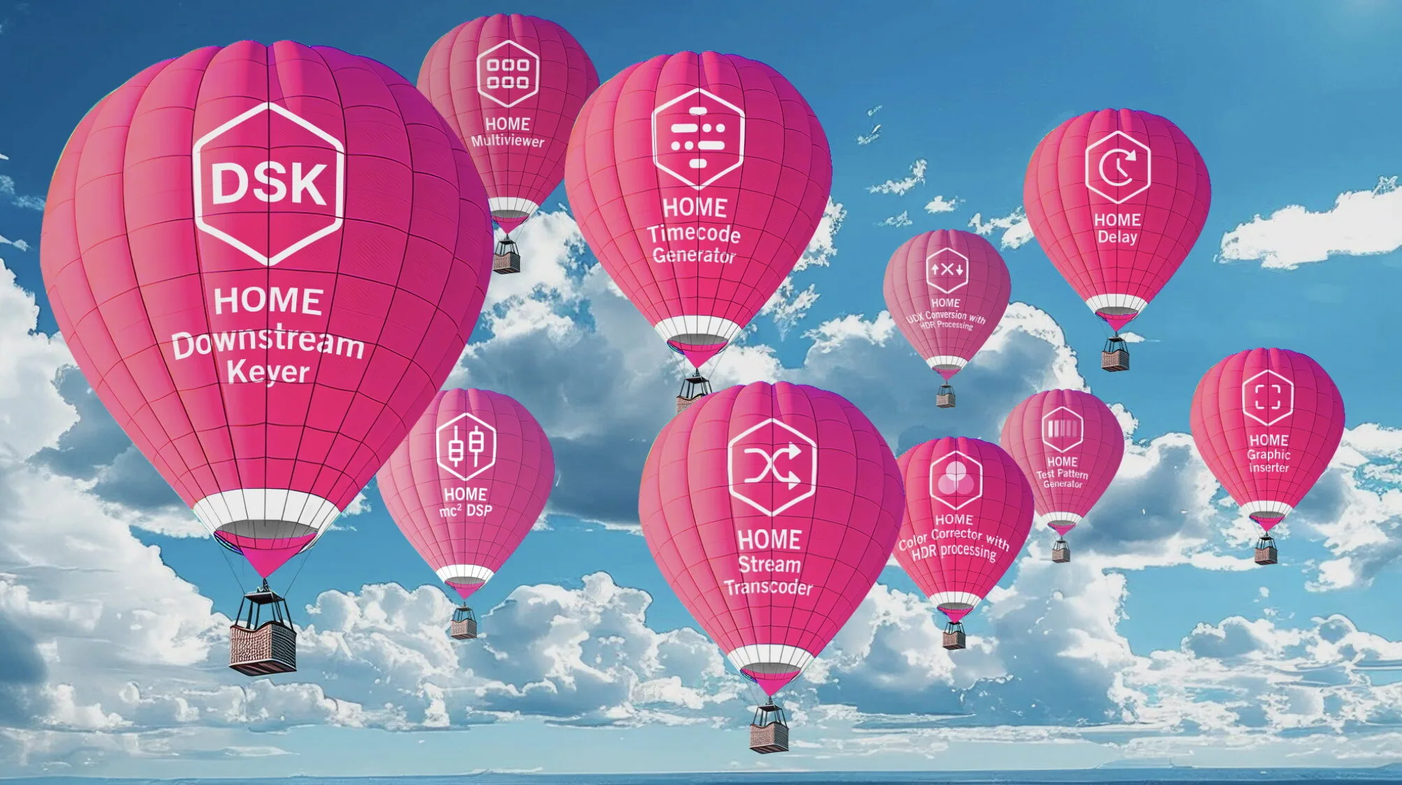 The app family of 10 includes the HOME Multiviewer, UDX Converter with HDR processing, and Graphic Inserter for seamless video and graphic workflows; the HOME mc² DSP App delivers powerful audio processing with features such as advanced EQ and dynamics control, while the HOME Test Pattern Generator, Color Corrector with HDR capabilities, and Timecode Generator offer indispensable tools for live and post-production environments. The HOME Downstream Keyer, the most recent addition, provides sophisticated video overlay capabilities, making it ideal for dynamic live productions.