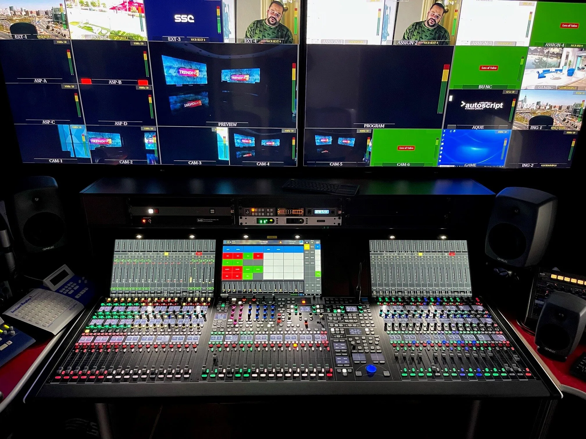 Beside raising the level of audio quality and processing power, one important consideration for the decision to base the new installation on IP-native Lawo solutions was flexibility: either control room needed to be able to serve either studio floor in a variety of I/O combinations. Based on a rights-management scheme, this approach has so far exceeded MBC’s initial expectations. It involves two 48-fader Lawo mc²56 Production Consoles and shared I/O for the IP networked system, set up as a mix of A__stage64 and modular DALLIS Stagebox devices. Embedding and de-embedding of audio in/from video feeds is realized with Lawo’s V__pro8 8-channel video/audio toolbox.