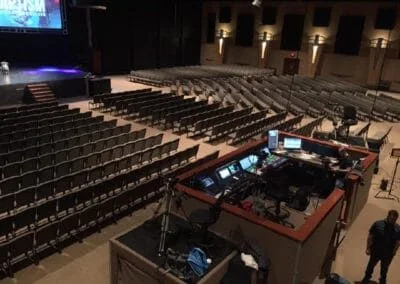 Granger Community Church has selected Lawo audio consoles and AoIP network solution to upgrade the audio system at their main worship center in Granger, Indiana. The facility regularly hosts as many as 3,000 people on a given weekend with full band, singers, worship leaders and audio playback elements and broadcast feeds all handled by the main audio system with separate consoles for FOH and monitors interconnected and able to share all I/O between them.